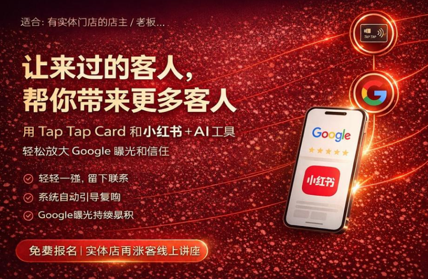 Google + XHS 双修: 顾客进店“碰一碰” (Tap-and-Go),AI 自动生成好评文案!